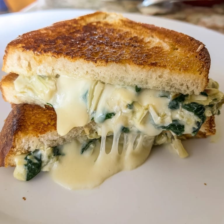 Pin It The idea came to me during a particularly rainy Tuesday when I was craving something comforting but had half a jar of artichokes staring back from the fridge. Why not combine the best parts of spinach artichoke dip with the nostalgia of a grilled cheese? That first sandwich, with its golden crust giving way to that creamy, cheesy center, was absolutely transformative. Now whenever gray skies roll in, this is exactly what my kitchen starts smelling like.