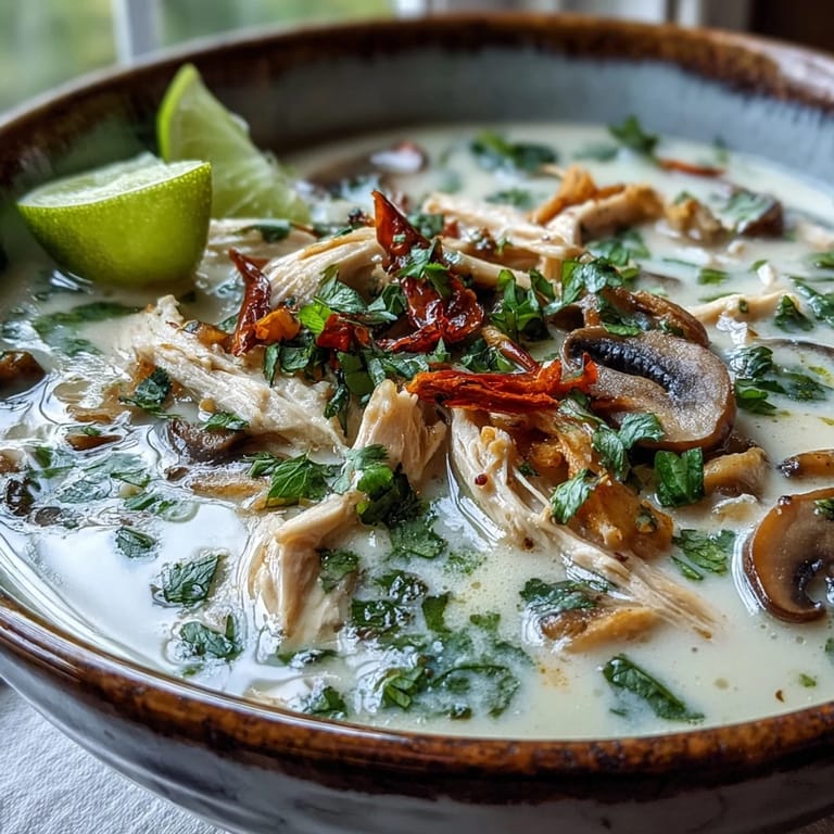 I started making this soup regularly after a particularly cold February when nothing else seemed appealing. My partner would come home to the smell of galangal and lime leaves simmering, and the kitchen would feel warm and full before we even sat down to eat. One night, a friend who'd never tried Thai food before came over, skeptical about coconut milk in soup. She finished two bowls and asked for the recipe before she left. Now she makes it for her own family every few weeks, and texts me photos of her pot every single time.