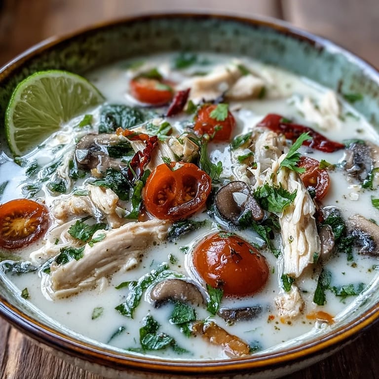 Pin It The steam rising from my bowl that first rainy evening in Bangkok still visits me in dreams. I had ducked into a tiny family run restaurant where the grandmother watched me struggle with the menu and simply brought me what she was making. That first spoonful hit me like a revelation the way creamy coconut wrapped around sharp tangy lime while gentle heat built at the back of my throat. Ive spent years trying to recreate that balance in my own kitchen adjusting and tasting until this version finally captured the magic.