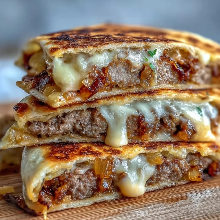 Pin It My roommate walked in while I was flipping burger patties inside a tortilla and said it looked like a beautiful accident. That's exactly what this recipe is: a collision of a smashburger and a quesadilla that somehow works better than either one alone. The tortilla gets golden and buttery, the patties stay thin and crispy, and the cheese does that gooey thing that makes you fold the whole wedge in half just to keep it together. I made it on a Tuesday night with whatever was left in the fridge, and now it's the thing I crave when I want comfort food that doesn't feel like I'm trying too hard. It's messy, it's indulgent, and it's absolutely worth the griddle cleanup.