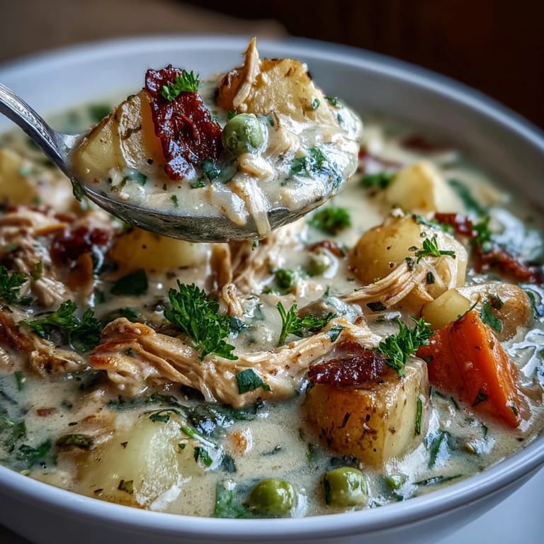Pin It There's something about the smell of butter and celery hitting a hot pan that instantly transports me back to my grandmother's kitchen on cold afternoons. She'd make this soup without measuring anything, just tossing vegetables into a pot with the confidence of someone who'd cooked the same dish a hundred times. I spent years trying to recreate that exact comfort, and it wasn't until I stopped rushing and started paying attention to when the potatoes actually got tender that everything clicked. This creamy chicken pot pie soup is that dish—all the warmth of the classic pie, but ready in under an hour and somehow even more satisfying.