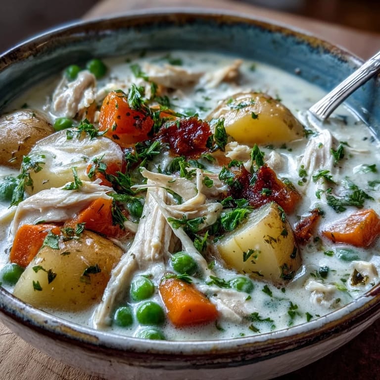 The magic here is that you're getting every single flavor you love about chicken pot pie—the creamy broth, tender vegetables, shredded chicken, that herbaceous warmth from thyme—but in soup form so you can eat it with just a spoon. I think of it as pot pie's more approachable cousin, the one you can make on a Tuesday night without special equipment or complicated techniques.