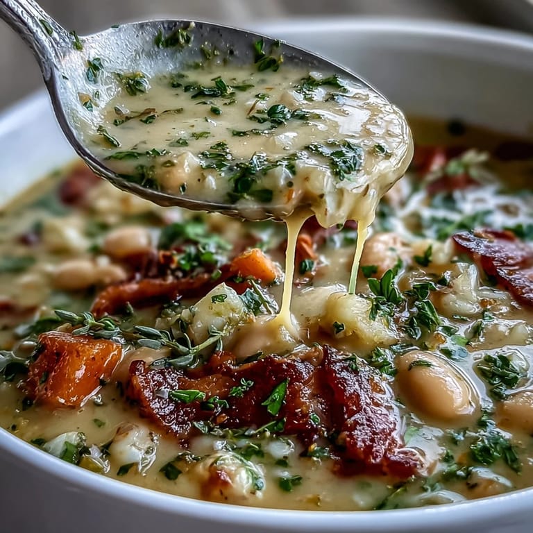 Pin It What makes this soup truly special is its humble simplicity. Diced yellow onion, carrots, and celery form a classic aromatic base, sautéed until soft and fragrant before garlic, ham, and potatoes join the pot. Rinsed white beans provide both body and protein, and a gentle simmer of 25 to 30 minutes lets everything meld into a cohesive, deeply savory soup. A quick pass with a potato masher at the end is the secret to that naturally thick, creamy consistency — no flour, no cornstarch, just the starchy goodness of beans and potatoes doing what they do best.