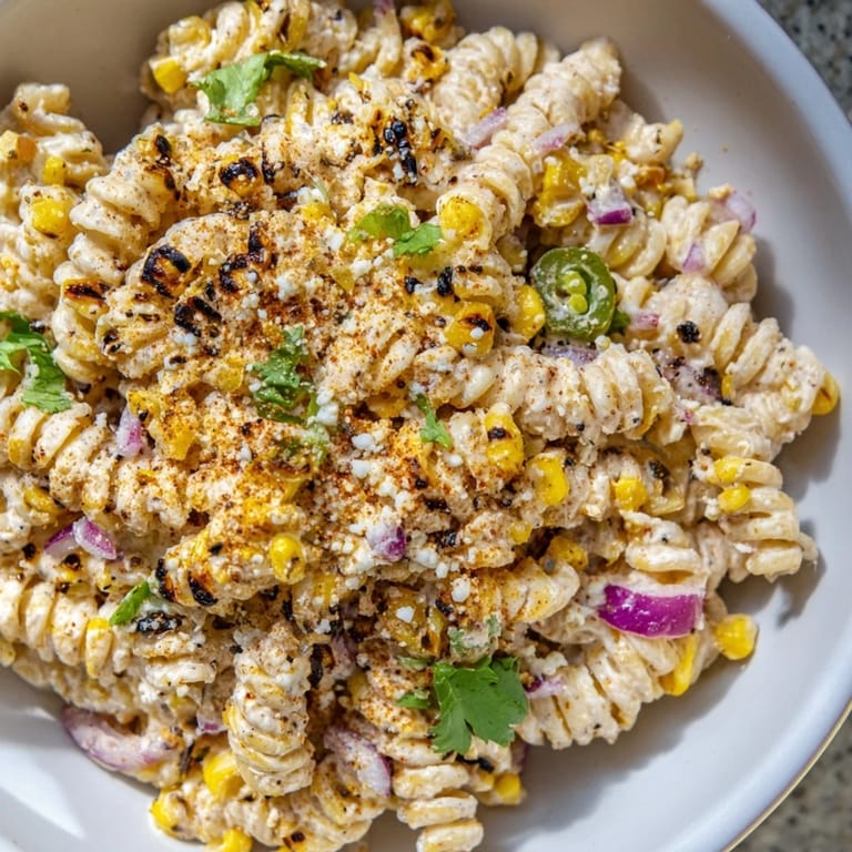 Pin It There's something magical about the smell of corn charring in a cast iron skillet on a hot summer afternoon. I discovered this recipe when my neighbor brought over fresh corn from the farmer's market and challenged me to do something beyond buttered cobs. I started playing with the idea of street corn but in salad form, adding pasta to make it hearty enough for a meal. The first time I tasted that combination of creamy, tangy, and slightly smoky all at once, I knew I'd stumbled onto something special.