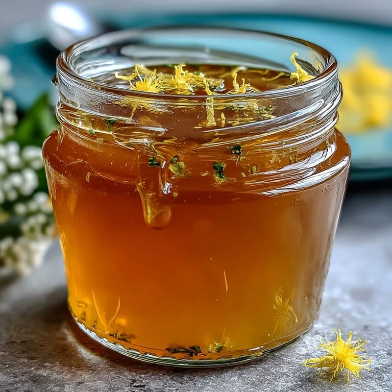 Pin It Dandelion Jelly with Fresh Lemon and Honey captures the delicate essence of spring in a jar. This bright, floral jelly balances the subtle bitterness of freshly foraged dandelion petals with the zesty brightness of fresh lemon and the mellow sweetness of mild honey. A true celebration of foraged flavors, it transforms humble wildflowers into a luxurious spread perfect for toast or a drizzle over creamy yogurt, inviting you to enjoy the tastes of nature’s bounty.