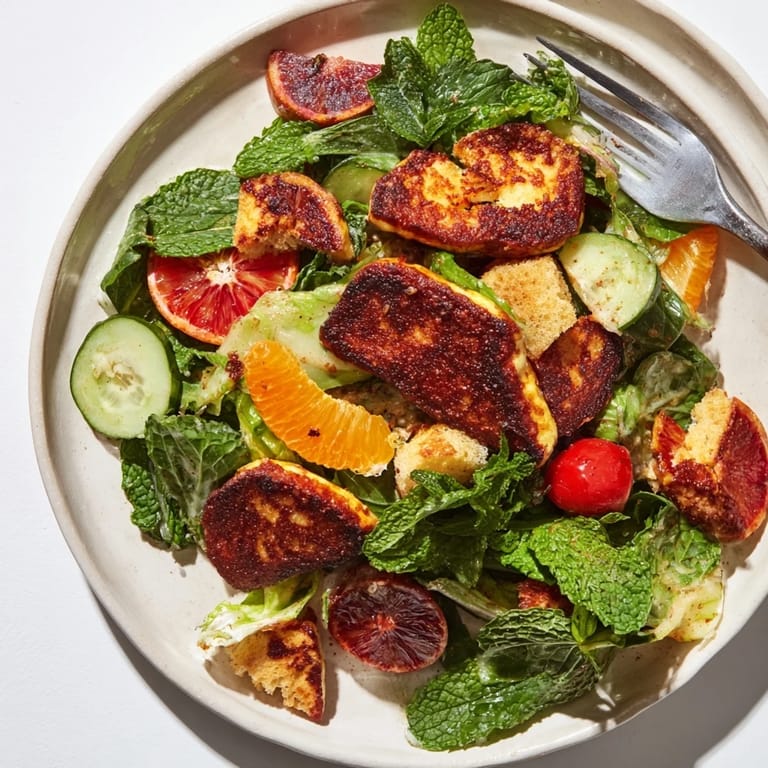 What makes fattoush sing is the interplay between salty, sweet, tart, and bitter. The halloumi brings salt, the oranges contribute sweetness, the vinaigrette provides tang, and the greens offer bitter notes. When you taste it, ask yourself what is missing and adjust accordingly.