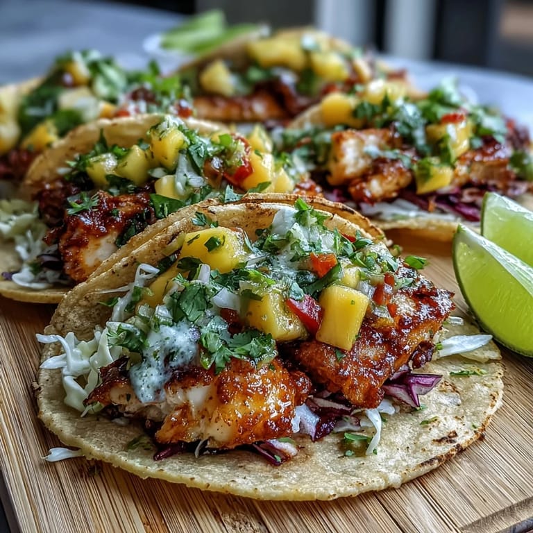 Pin It There's something about the smell of tilapia hitting hot oil that signals summer is actually here, even if the calendar says otherwise. My neighbor brought over fresh mangoes from her farmer's market haul one afternoon, and I found myself standing in my kitchen thinking about how to turn a simple weeknight dinner into something that tasted like a beach vacation. These mango salsa tilapia tacos came together almost by accident that day, but they've become the thing I make when I want to feel like I'm eating somewhere warm and bright, even in my ordinary kitchen.