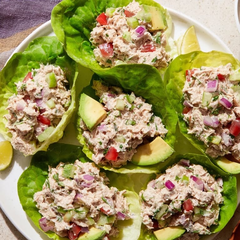 Pin It A fresh and satisfying lunch or light dinner featuring protein-packed tuna salad wrapped in crisp lettuce leaves—perfect for a quick, low-carb, and nutritious meal.