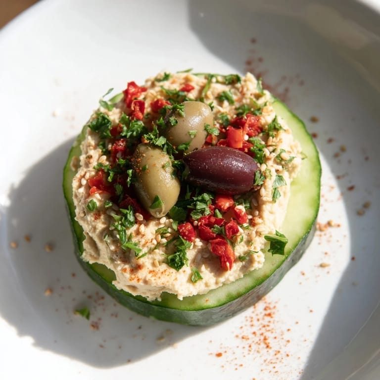 Pin It Quick Hummus and Cucumber Bites are the perfect fresh and healthy appetizer for any occasion. Crisp cucumber rounds provide a refreshing base for creamy, flavorful hummus, while a variety of vibrant garnishes add color and extra taste. These bites are ideal for parties, light snacks, or anytime you want a simple yet delightful Mediterranean-inspired treat.