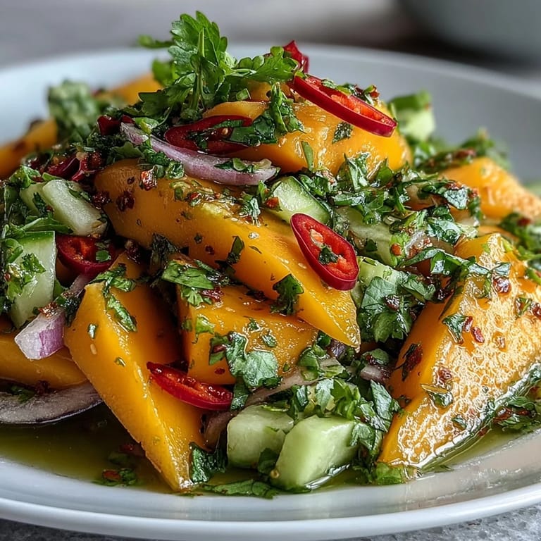 Pin It There's something about a bowl of bright, juicy mango salad that makes ordinary days feel a little more special, like a small vacation you can take without leaving your kitchen. I hope it becomes one of those recipes you turn to when you need something quick, beautiful, and completely satisfying.