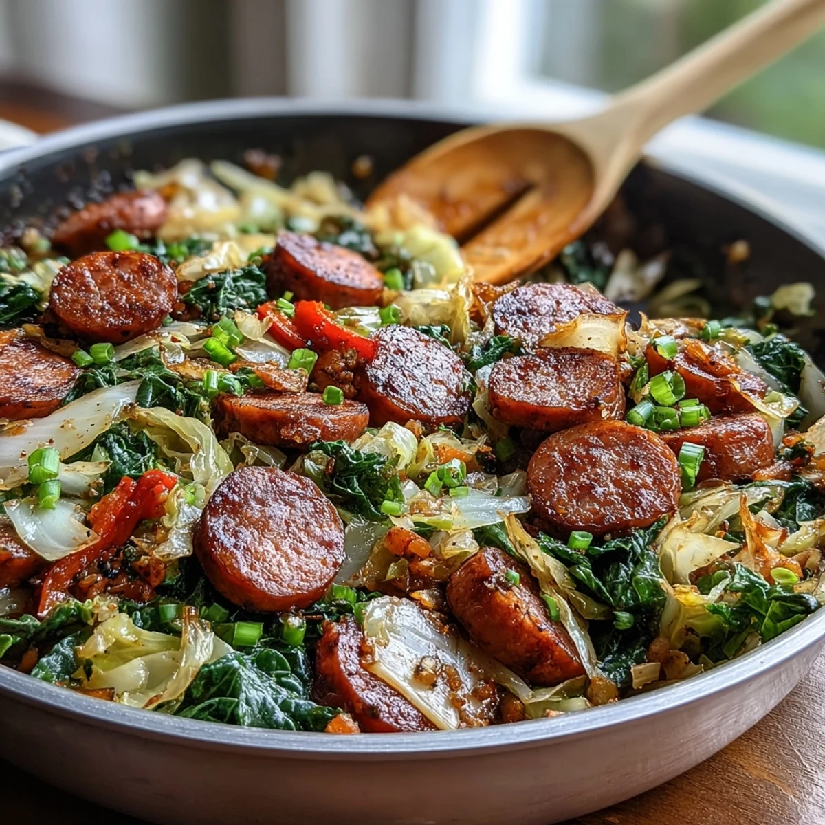 To ensure the best texture, use a large skillet with a tight-fitting lid to help the cabbage steam efficiently. A sturdy wooden spoon is perfect for scraping up the browned bits (fond) left by the sausage, which adds incredible depth to the broth. Always check your sausage labels to verify they meet your dietary needs regarding gluten or dairy.