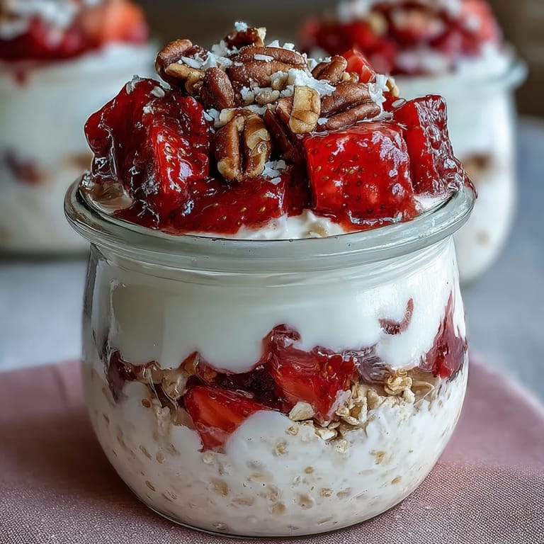 Pin It There's something wonderfully lazy about overnight oats, especially when you're standing in your kitchen at night thinking about tomorrow's breakfast. I stumbled onto this strawberry cheesecake version when I had leftover cream cheese and a pint of strawberries that needed rescuing, and honestly, the combination felt like cheating—like I'd somehow tricked myself into eating dessert for breakfast. The beauty of it is that you're not actually cooking; you're just layering, covering, and letting time do all the work while you sleep. When you uncover it in the morning, that creamy, tangy filling has completely transformed the oats into something silky and indulgent.