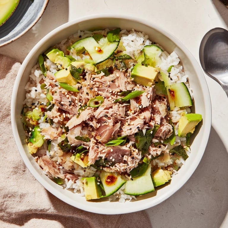 Pin It My neighbor knocked on my door one Saturday morning holding a can of tuna and asking if I had any tricks to make lunch exciting. I pulled out rice, an avocado that was perfectly ripe, and a cucumber from the crisper drawer. Twenty minutes later, we were sitting on my back porch with these bowls, and she actually said it felt like eating at a downtown café. Sometimes the best meals happen when you stop overthinking and just layer good things together.